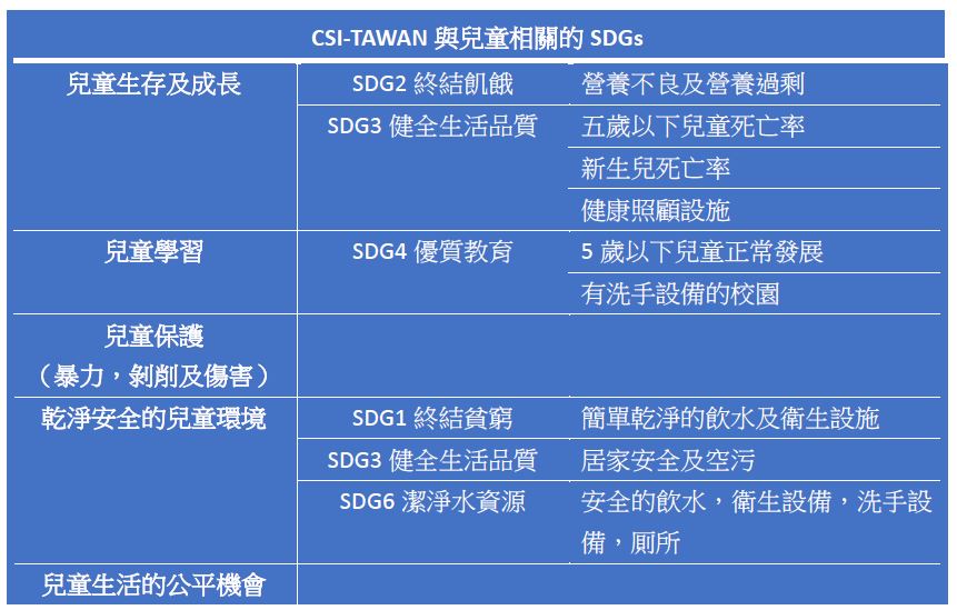 最後有關兒童永續 (權利)的這5面項中,有哪些是與CSI-TAIWAN任務 (MISSON)較直接或未來可能相關的呢 ?