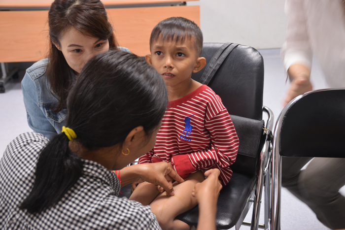2019.07 月協會在柬埔寨暹粒Pro-hut 村莊執行計劃時,Roy Bunrong 的母親帶著他來找我們。Roy是一位十歲大的男生,家中的唯一男孩,發展正常。Roy的父母相當焦慮,因為他的身高只有102.5公分,體重13公斤。這不是營養不良,非執行的豆漿營養補充計劃可協助的事情。我們帶著Roy到當地的醫院照了左手腕骨頭X 光片,對照圖譜後發現只有4.5歲的骨齡。然而,問了整個暹粒市醫院,都無法進行生長激素的分泌檢測。而在台灣,身長遲緩的原因是可診斷亦可治療的狀況。Roy的爸爸是建築工人,有工作時一天的收入是10美元,是屬於貧窮的狀況。